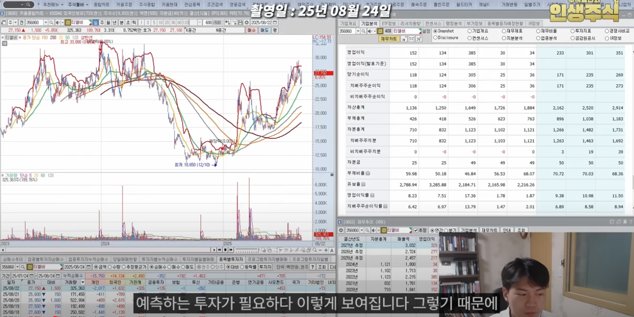 TLB는 상장한 지 오래되지 않은 기업으로, 시가총액이 크지 않음에도 변동성이 크고 주가의 파동이 뚜렷합니다. 그동안 영업이익과 순이익은 기대보다 더디게 회복되었지만, 올해 들어 본격적인 턴어라운드의 조짐이 나타나고 있습니다.